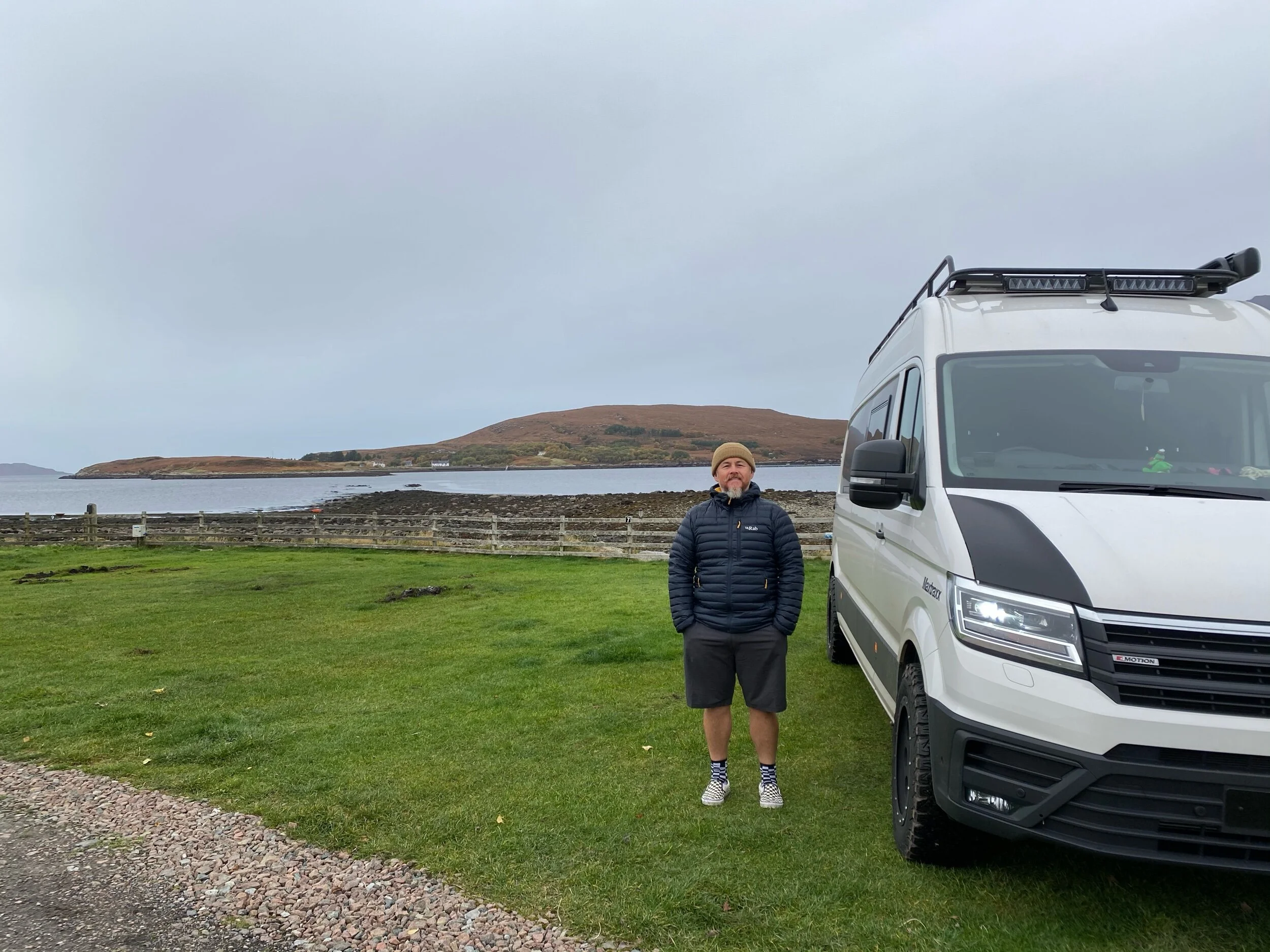 After the usual packing up and getting the van ready to drive, we headed in the direction of Ullapool. Another beautiful drive through the mountains and along the coast. Certainly not getting tired of the views as we travel through Scotland! When we arrived in Ullapool, which is a sprawling metropolis by Highlands standards, we thought we’d take some time to explore the town and grab a hot drink. So we found a pub…and had a coffee and hot chocolate…Tubbs was driving after all! It’s the small things eh? What a treat, because for the last week we have not found any cafes open, only take-away or outside seating. We had a lovely mooch around a few of the quaint shops then found a Tesco to stock up for the next few days. This is all important stuff when living in a van and touring Scotland as you never know when you will next find a shop for the all important beer, wine and crisps 😋